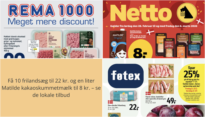 Vi har kigget på denne uges tilbudsaviser for dagligvarebutikker i Kokkedal og fundet nogle fantastiske tilbud. Her er et udpluk af de bedste tilbud fra Føtex, Netto og Rema 1000.