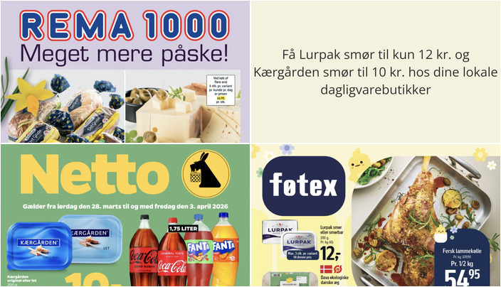 Hos Netto kan du få Kærgården smør, original eller let, til kun 10 kr. for 200 g. Der er en begrænsning på 3 stk. pr. variant pr. kunde pr. dag. Tilbuddene gælder fra lørdag den 28. marts til fredag den 3. april.